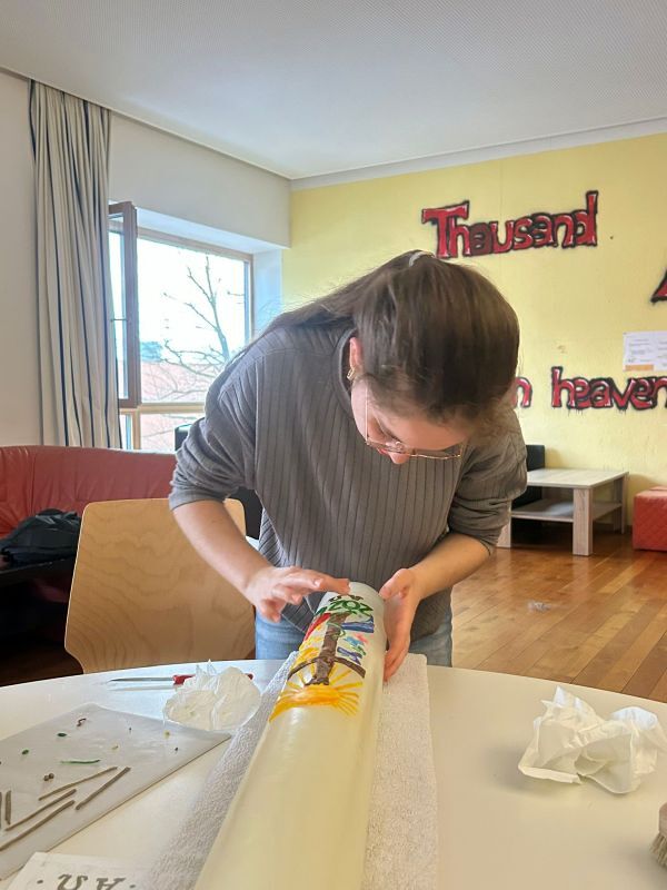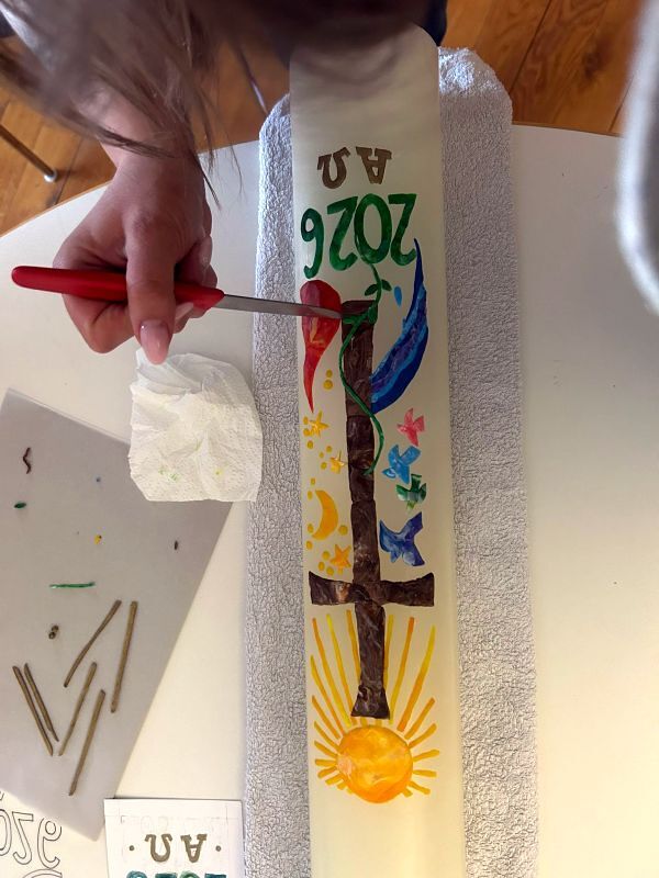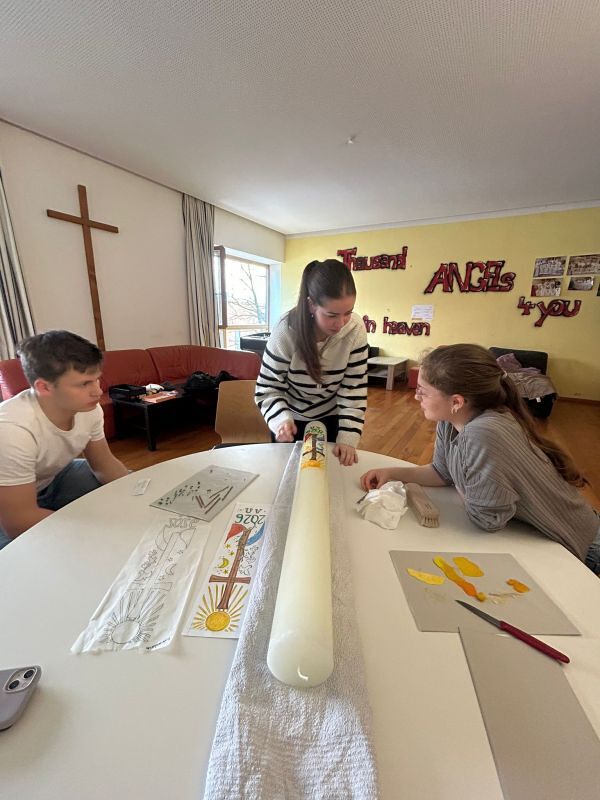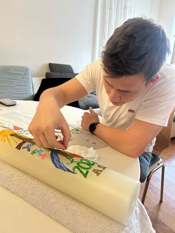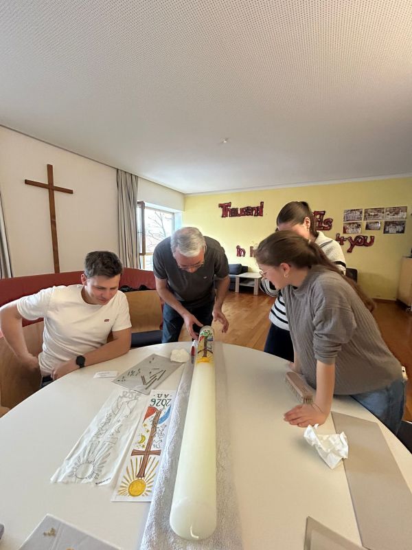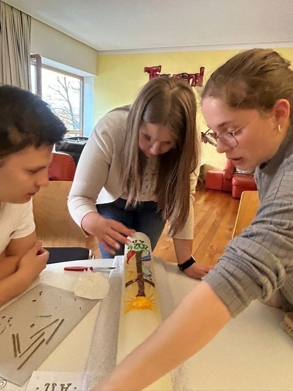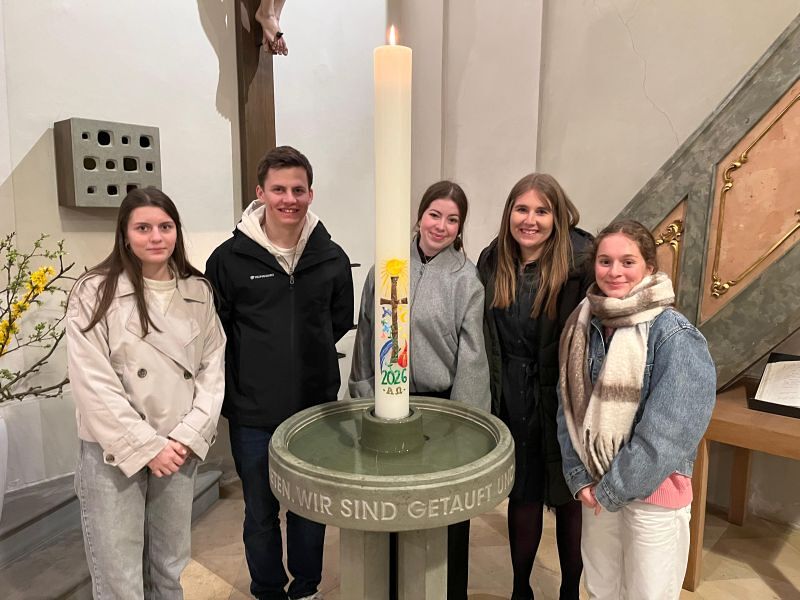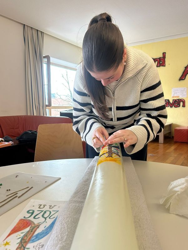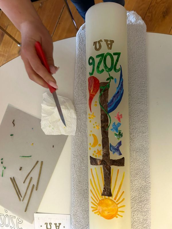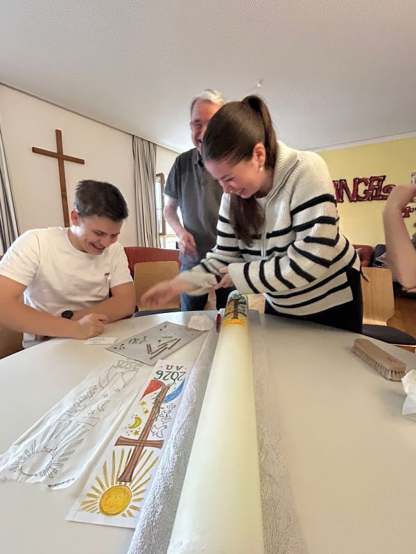 Zum 800. Todestag des heiligen Franziskus von Assisi gestalteten vier unserer Minileiter (Anna Moosbrugger, David Schmid, Elena Schmid, Romina Kucher) und Verena gemeinsam mit Georg Bertel eine ganz besondere Osterkerze.