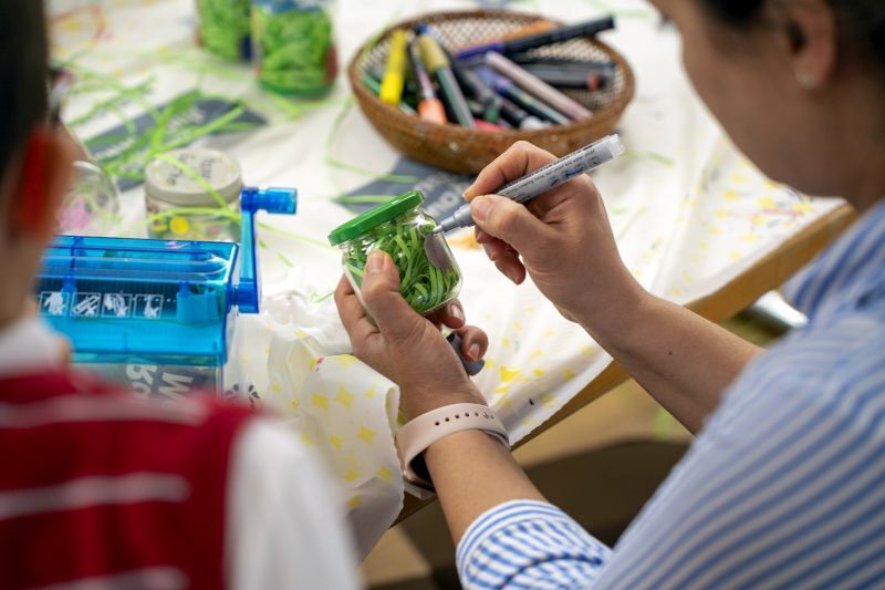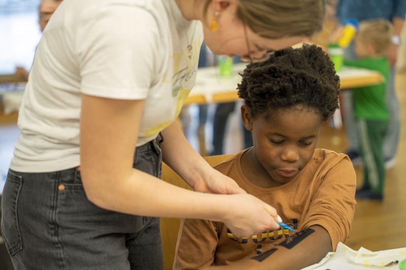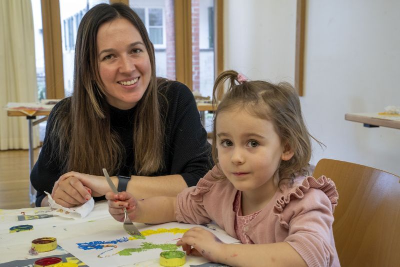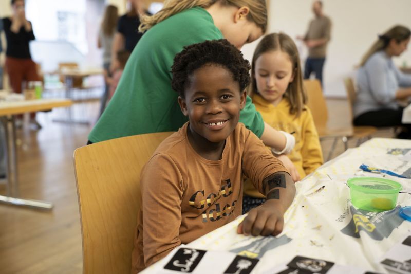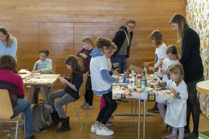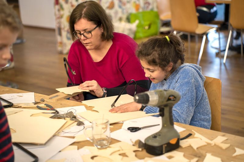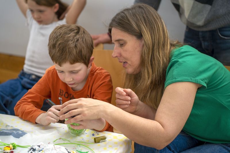 Mit Begeisterung waren die Kinder mit ihren Begleitpersonen dabei, den Osterschmuck zu basteln.