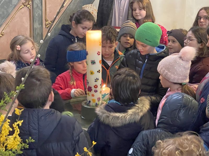 Gemeinsam sind wir den Weg von Jesus gegangen und haben darüber nachgedacht, wo auch in unseren Familien in einer schwierigen Zeit das Licht scheinen kann. Am Schluss haben wir gemeinsam die neue Kerze für die Jesusfeier gesegnet und uns gegenseitig den Segen zugesprochen.