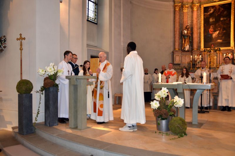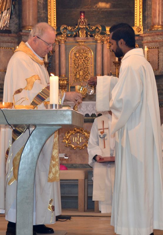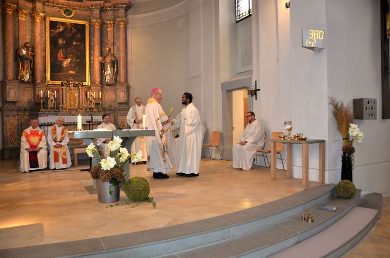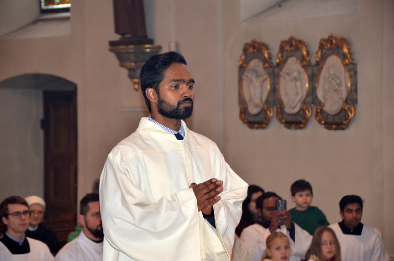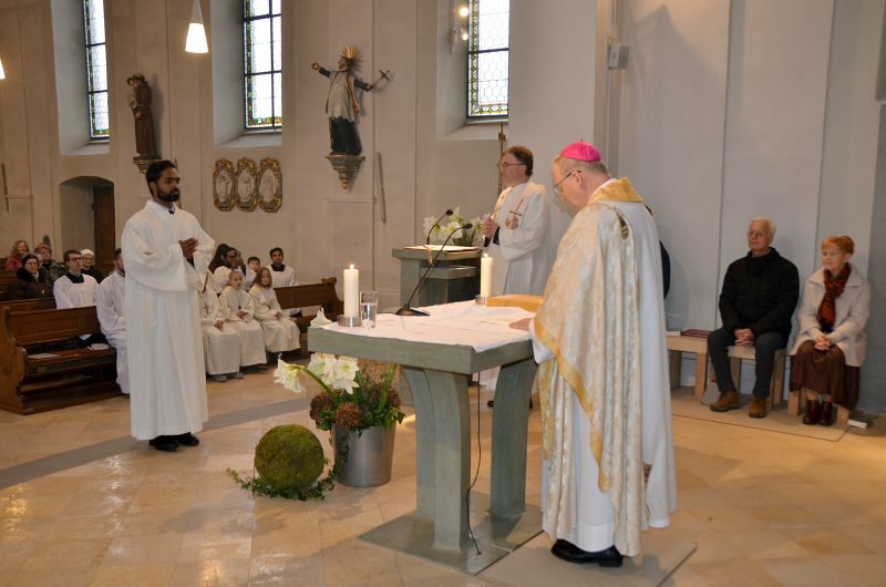 Der Theologiestudent Christopher Illimarambil wurde in einem feierlichen Gottesdienst mit Bischof Benno, einigen Mitbrüdern aus dem Priesterstand, Studienkollegen aus dem Priesterseminar Innsbruck und Vielen aus der Pfarrgemeinde, in den Kandidatenstatus der Priesteranwärter aufgenommen. Christopher stammt aus Kerala in Indien und hat bei lieben Menschen in der Pfarre Lochau so etwas wie eine zweite Heimat gefunden. Deshalb hat diese Feier auch hier statt gefunden.