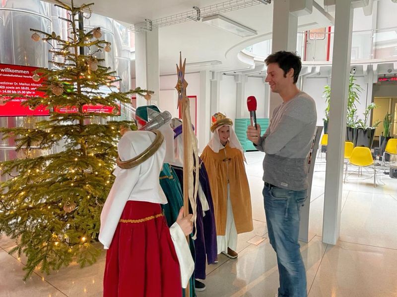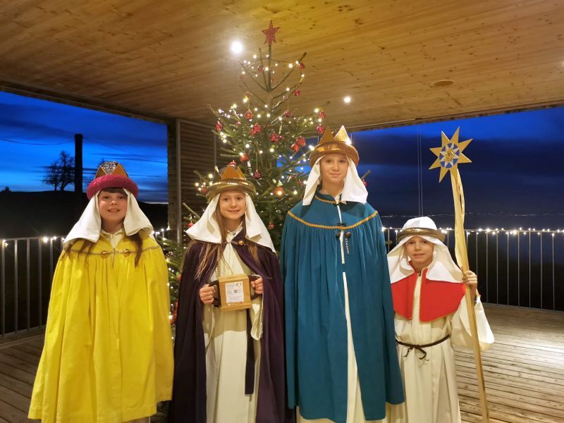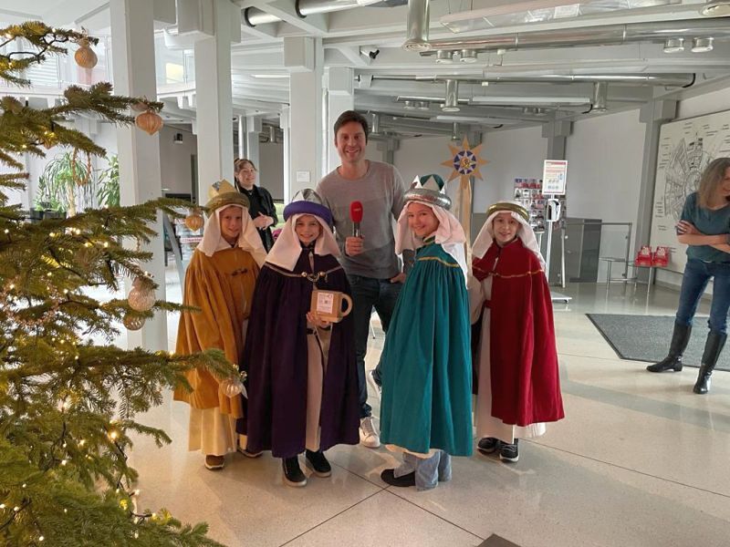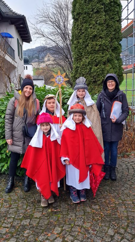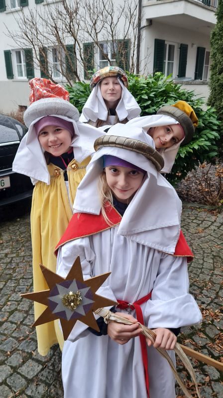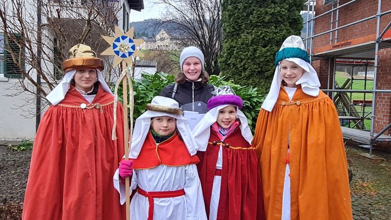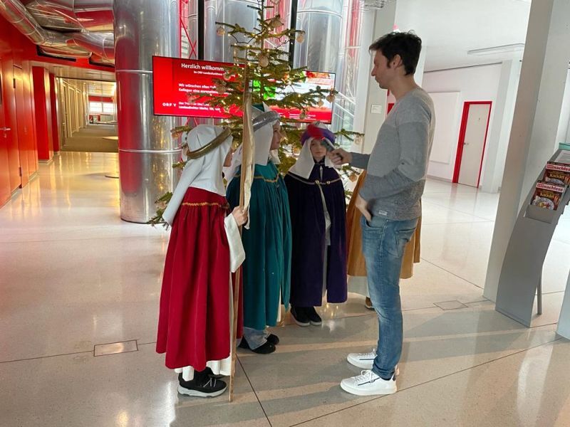 Am 5., 6. und 7. Jänner waren 45 Kinder mit 17 Begleiter*innen und zwei Erwachsenengruppen unterwegs, um Spenden für die Sternsingeraktion zu sammeln. Heuer durften wir mit einer Gruppe Bischof Benno im Bischofshaus besuchen und mit einer Gruppe waren wir bei Radio Vorarlberg.