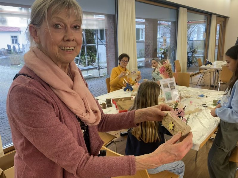 Eine Pause im Pfarrcafé bei Birgit Klagian-Müller und ihrem Team durfte natürlich nicht fehlen. Vielen Dank für die wunderbaren Kuchen und Naschereien, mit denen ihr uns gestärkt habt. Liebe Emma, Lea, Johanna, Tobi, Sonja und Dragan, ich bedanke mich bei euch für die wertvolle Hilfe beim Aufbau und bei den Vorbereitungen. Lieber Papa, danke für die immer perfekten Holz-Rohlinge und danke Mama für deine liebevolle Unterstützung. Herzlichen Dank auch an Diana Binder vom Lochauer Blumenladen "außergewöhnlich" für die wunderbaren Trockenblumen, die kleinen und auch großen Bastler:innen hatten viel Freude damit.