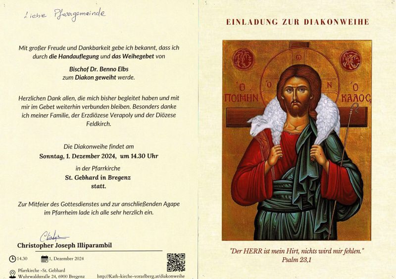 Diakonweihe von Christopher Illiparambil in Bregenz St. Gebhard