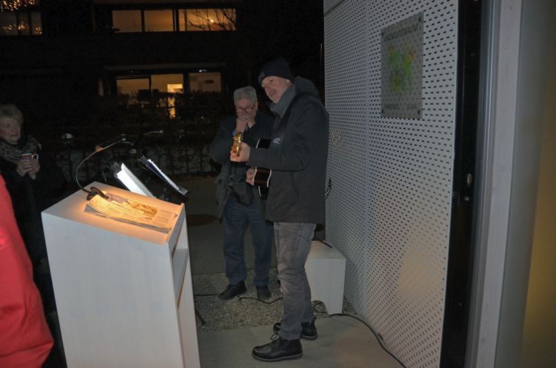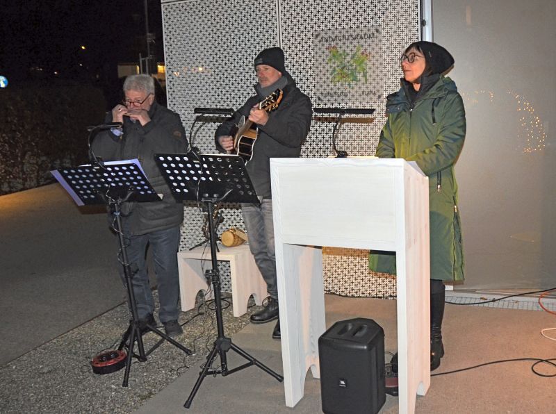 Ingrid Böhler gestaltete die Feier mit besinnlichen und lustigen Texten. Reinhard Gisinger und sein Sohn spielten Weihnachtslieder mit Mundharmonika, Gitarre und Saxophon und beflügelten die Besucher*innen zum Mitsingen.