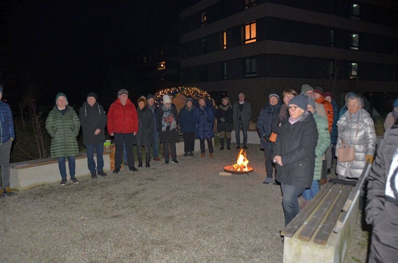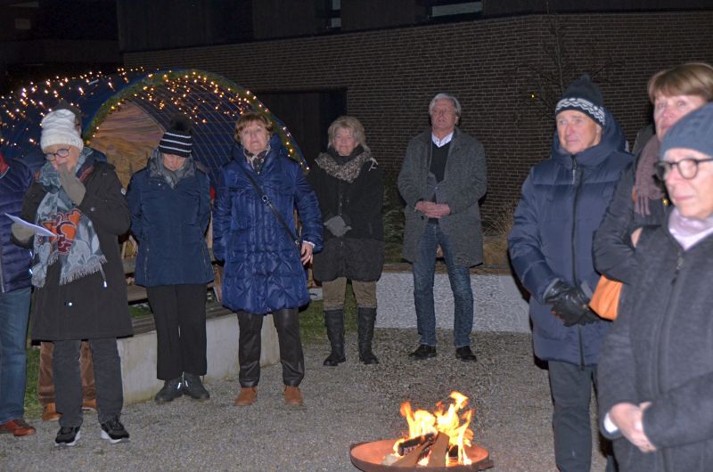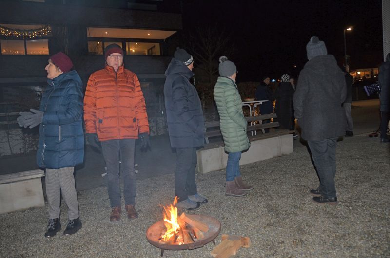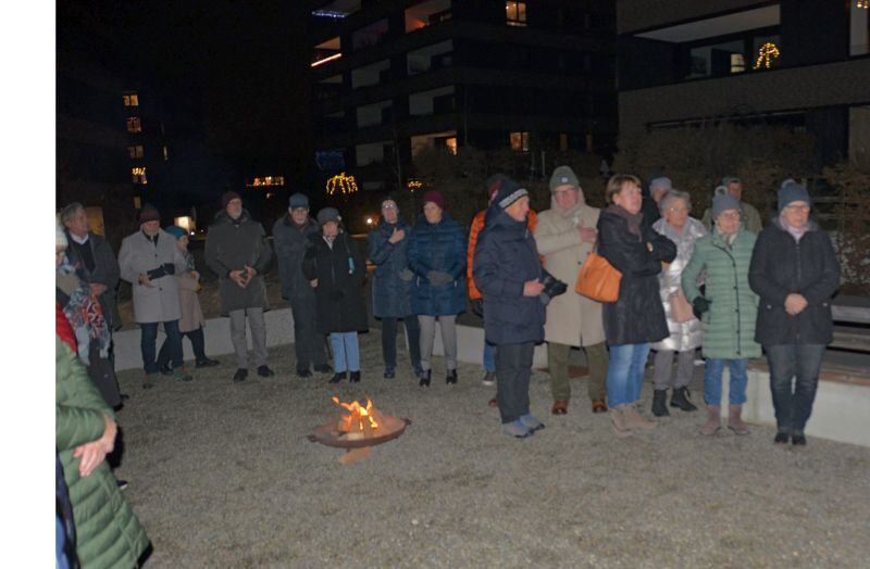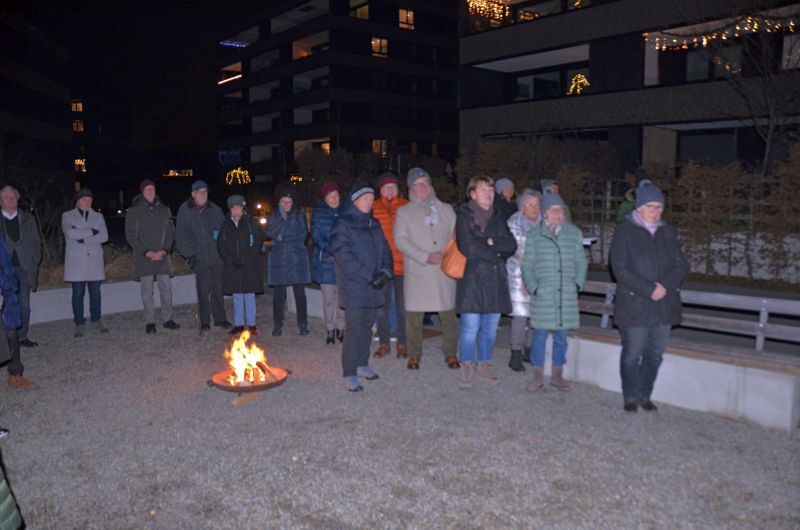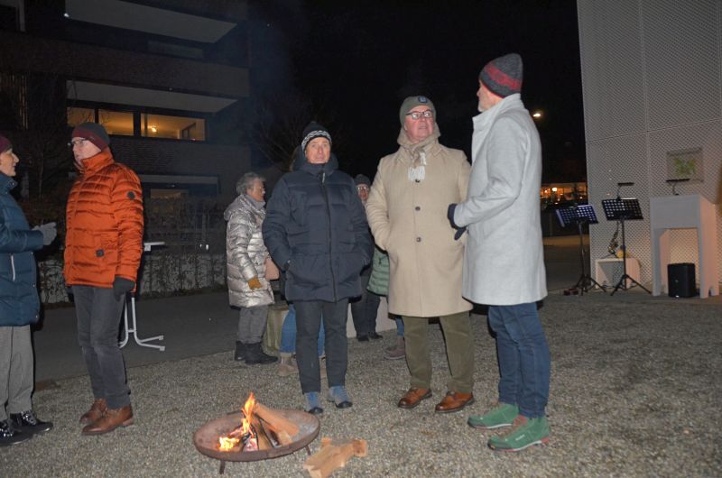 Bereits zum vierten Mal lud die Pfarre Lochau auch heuer wieder zum Hirtenfeuer am 13. Dezember vor dem Andachtsraum im Seedomizil. Rund 30 Besucher*innen nahmen daran teil, darunter der Gemeindeleiter Edgar Ferchl-Blum, der Vorsitzende des Pfarrgemeinderates Peter Holzner, der Künstler Hans Sturn und der Organisator Werner Benzer.