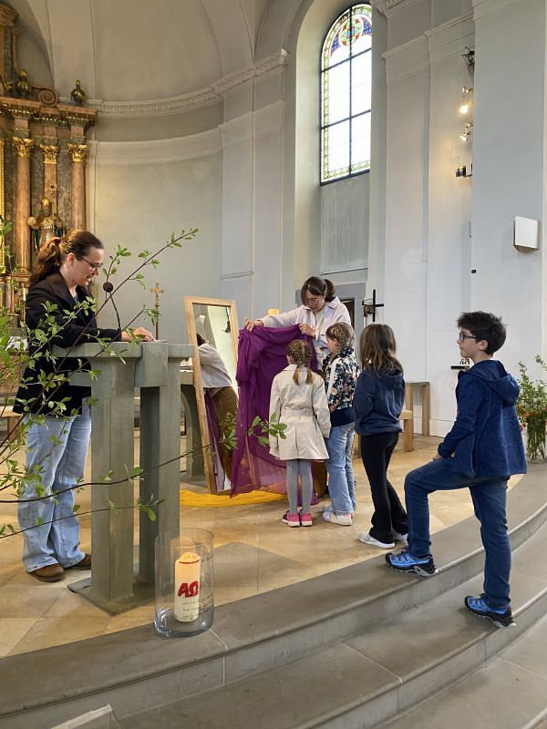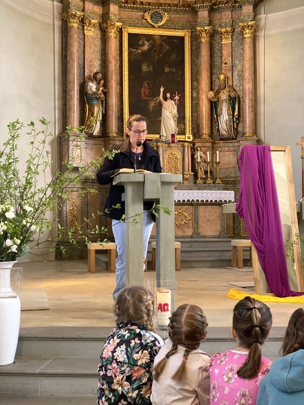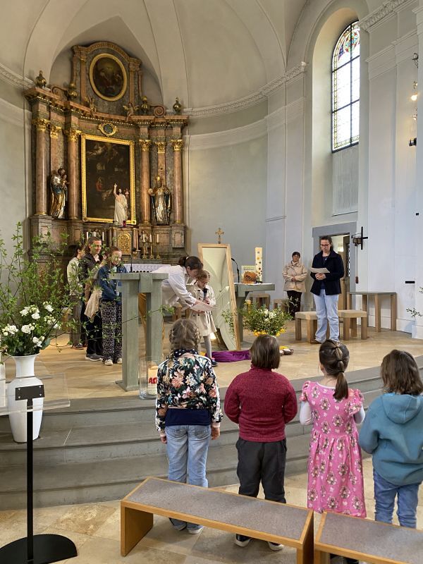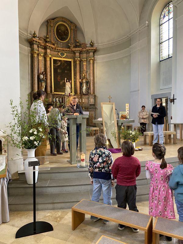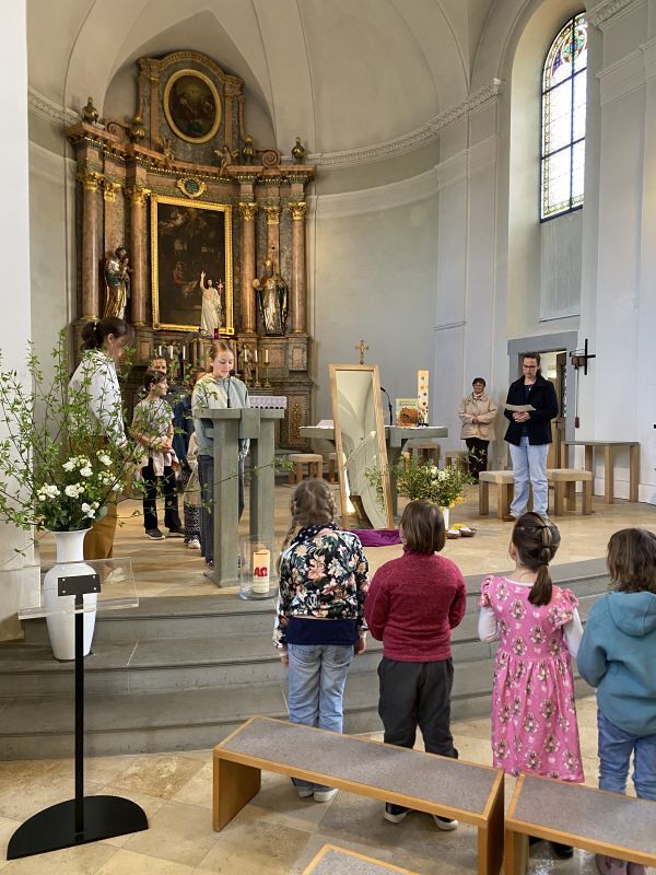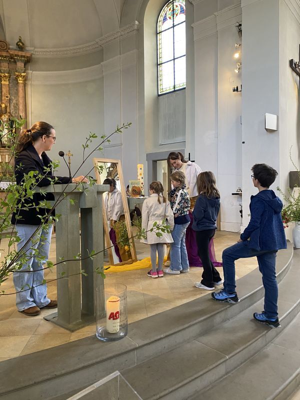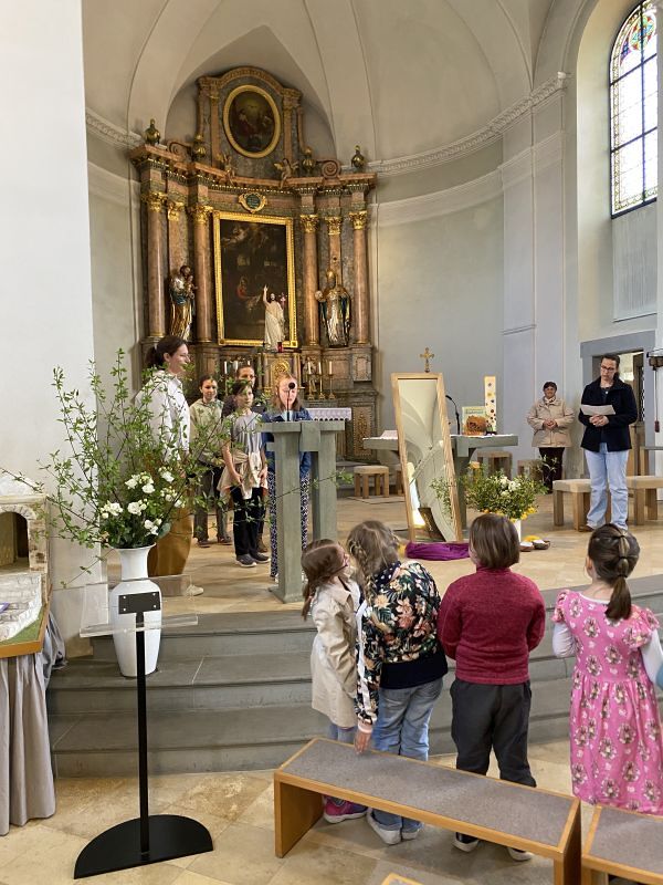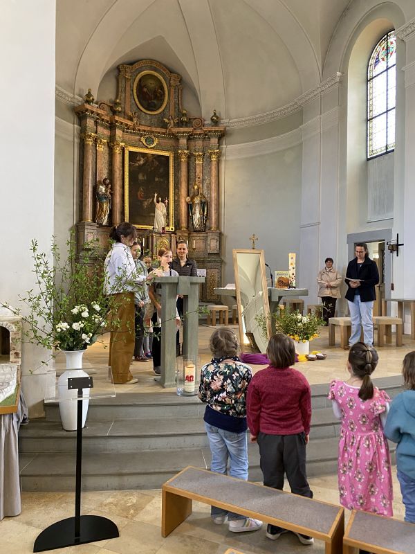 Mit diesen Worten zauberten Katharina Gertner und Judith Zorthea den Kindern bei der Osterfeier für Familien ein Lächeln ins Gesicht. Wieder einmal haben die Beiden es geschafft, eine liebevolle, kindgerechte Kirchenfeier zu gestalten. Musikalisch begleitet vom Kinderchor unter der Leitung von Birgit Bonner und am Klavier von Alfred Dünser, haben wir mit unseren Kindern eine berührende und greifbare Osterfeier erlebt, die uns einmal mehr daran erinnert, um was es im Leben wirklich geht.