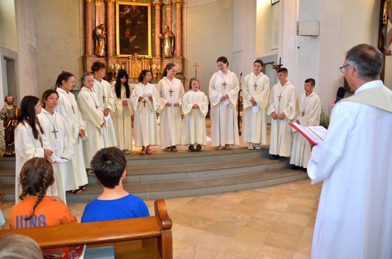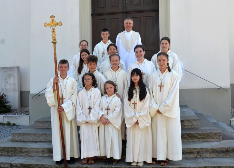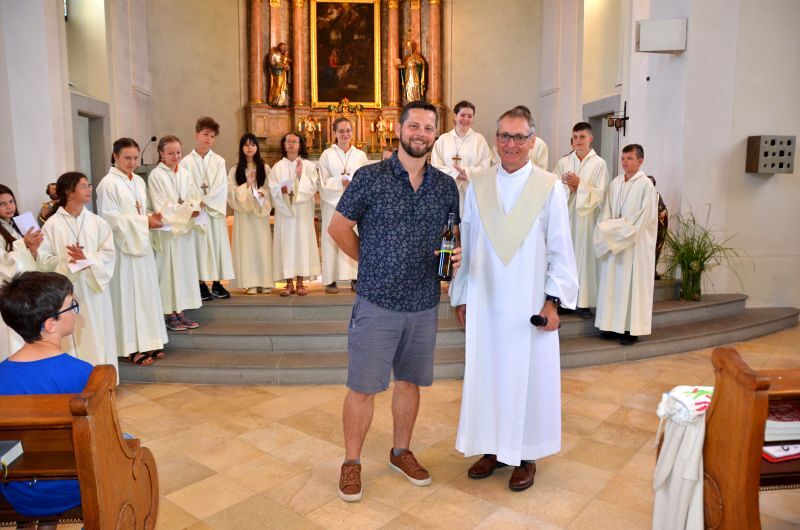 Am 29.06. wurde unsere Leonie im Gottesdienst feierlich in den Kreis der Ministranten aufgenommen. Gleichzeitig wurde Manuel nach 25 Jahren engagierten Ministrantendienstes verabschiedet. Im Anschluss an den Gottesdienst fand das traditionelle Sommerfest auf dem Pfarrplatz statt, bei dem die Jungmusik und die Rasselbande für eine fröhliche Atmosphäre sorgten.