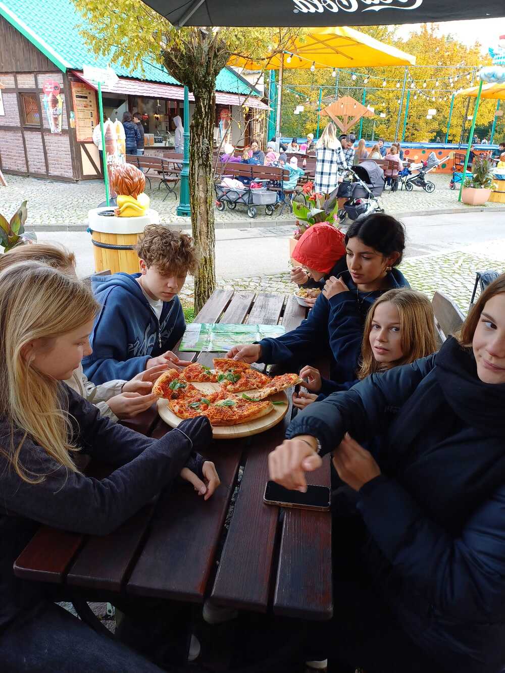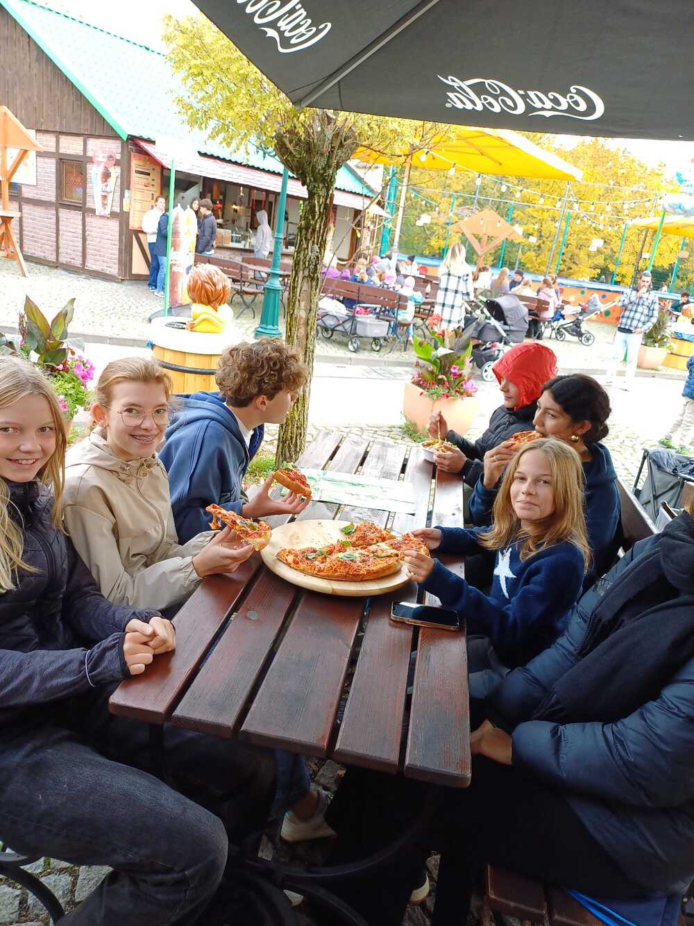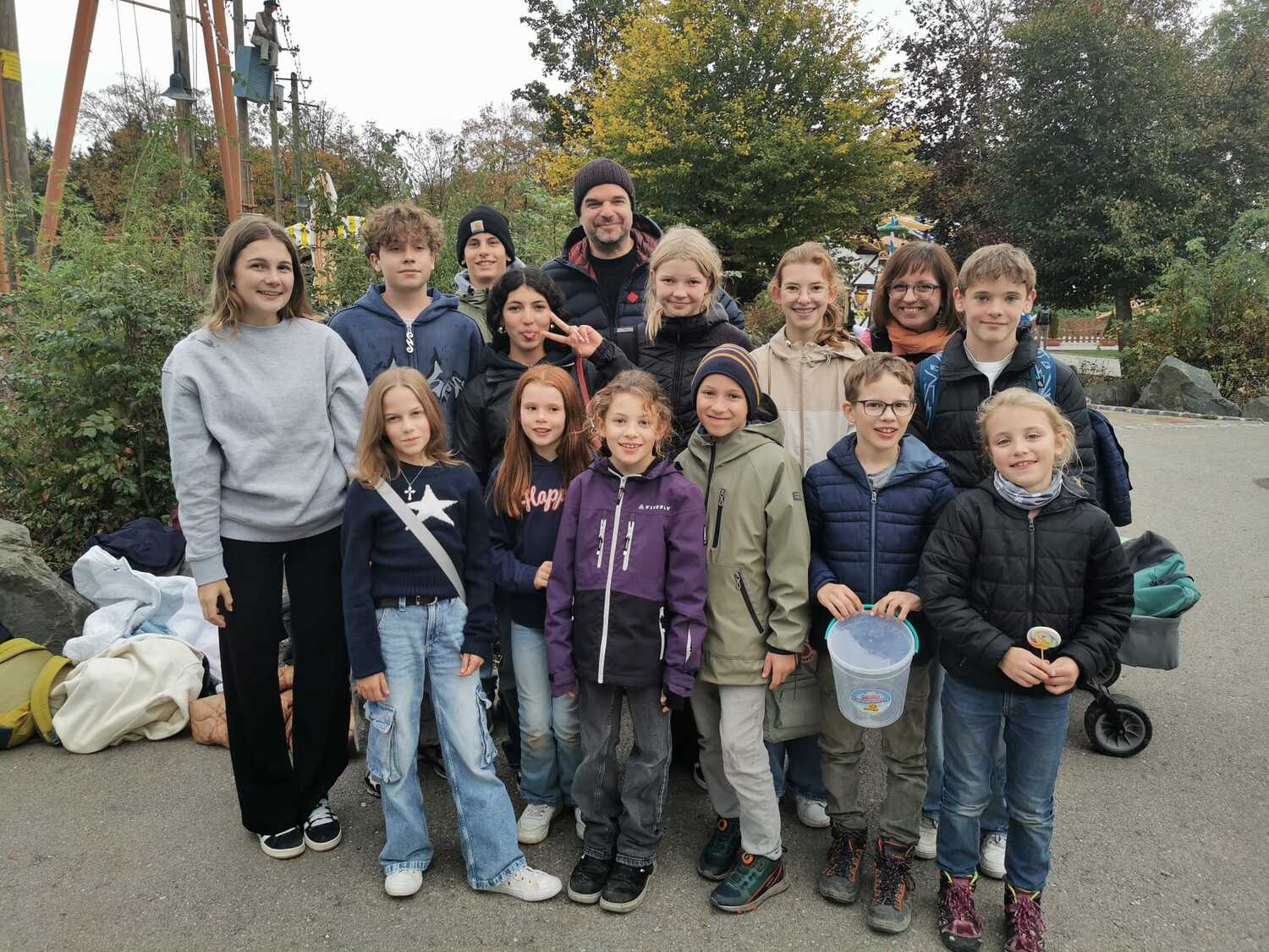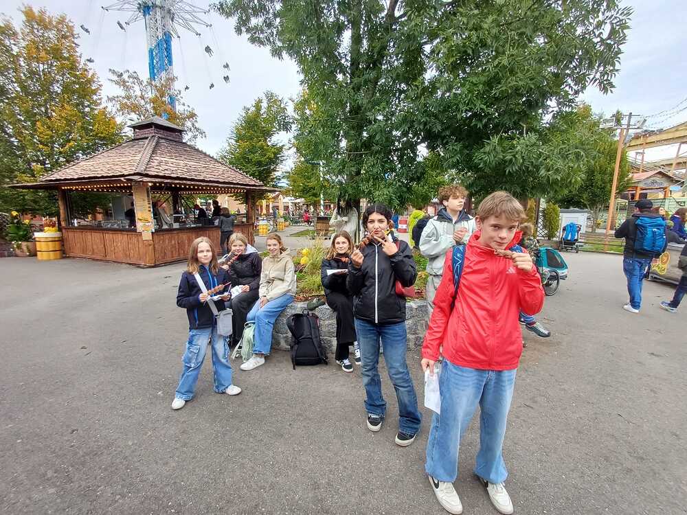 Obwohl das Wetter anfangs kühlere Temperaturen für uns bereithielt, tat dies der Abenteuerlust keinen Abbruch. Während die älteren Minis selbständig in einer Gruppe den Park erkunden durften, waren die jüngeren in Begleitung der Erwachsenen unterwegs. Beim gemeinsamen Pizzaessen in der Mittagszeit konnten sich alle austauschen und für die weitere Erkundungstour stärken. Süße Naschereien wie Zuckerwatte, schokolierte Früchte oder Obst sorgten zusätzlich für "Jahrmarkt-Stimmung".